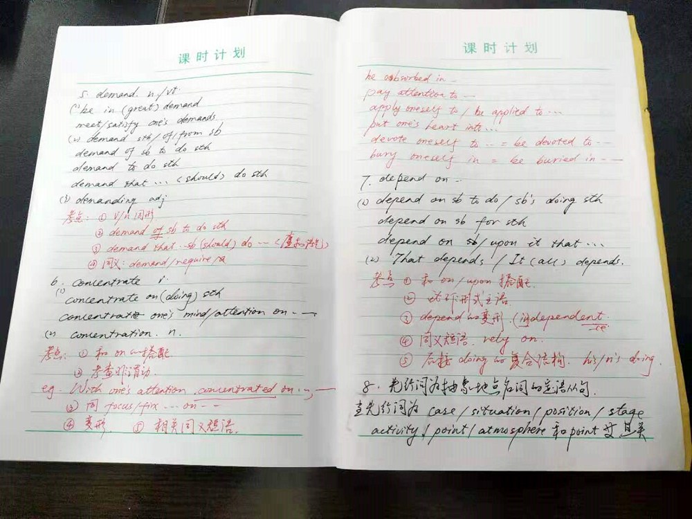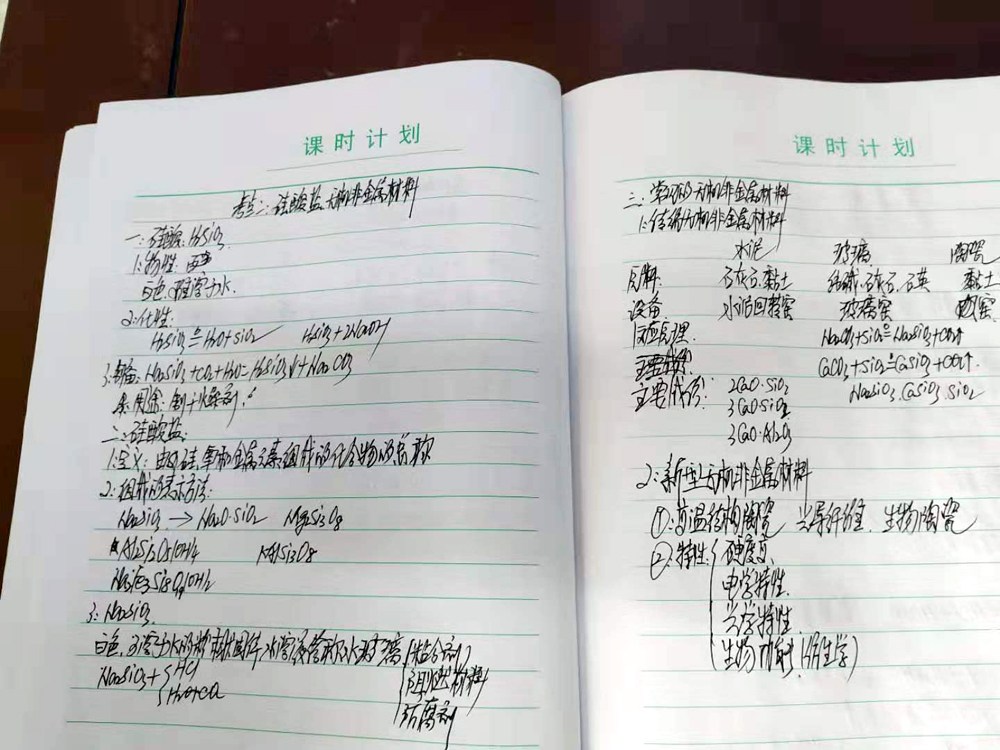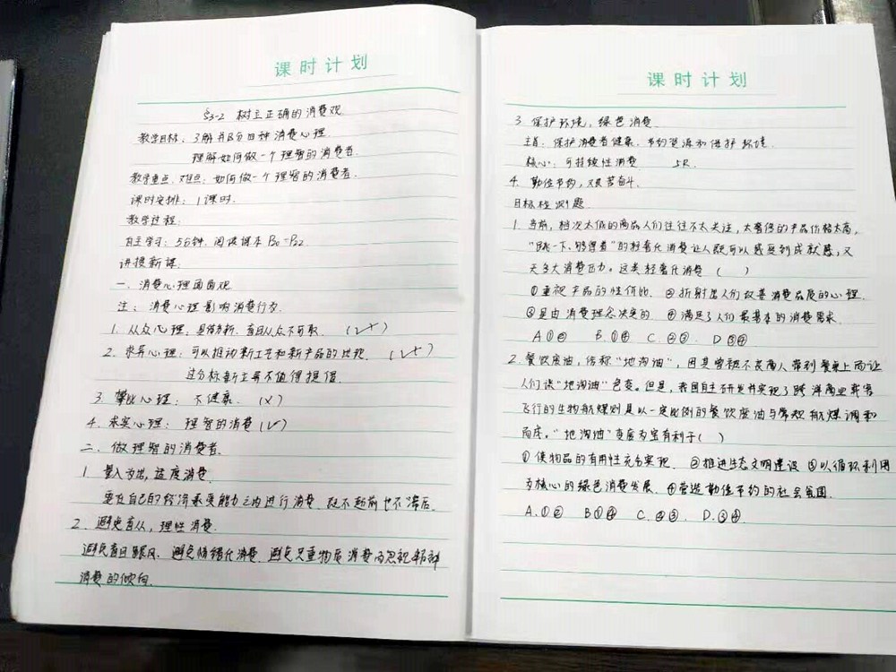 高中部周福令校长正被教案吸引得目不转睛呢。
